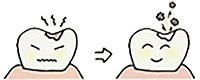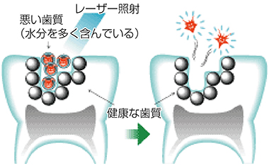 虫歯菌に感染した悪いところだけを取り除いて、健全な部分をできるだけ残す治療ができます。麻酔注射なしでも痛みを感じることはほとんど無く、歯を削る音や振動もありません。