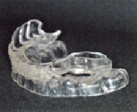A. 寝るときに下の顎を少し前方に突き出させるように工夫したマウスピースを、口に入れてお休みになる方法です。この装置を入れることで、のどの気道(空気の通り道)がひろがって、いびきや無呼吸がなくなります。