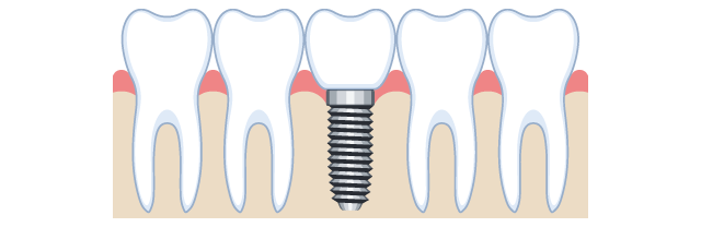 歯がなくなったところの骨に、主にチタンなどの金属を埋め込み、その上に人工の歯を作る方法です。人工歯根とも呼ばれます。